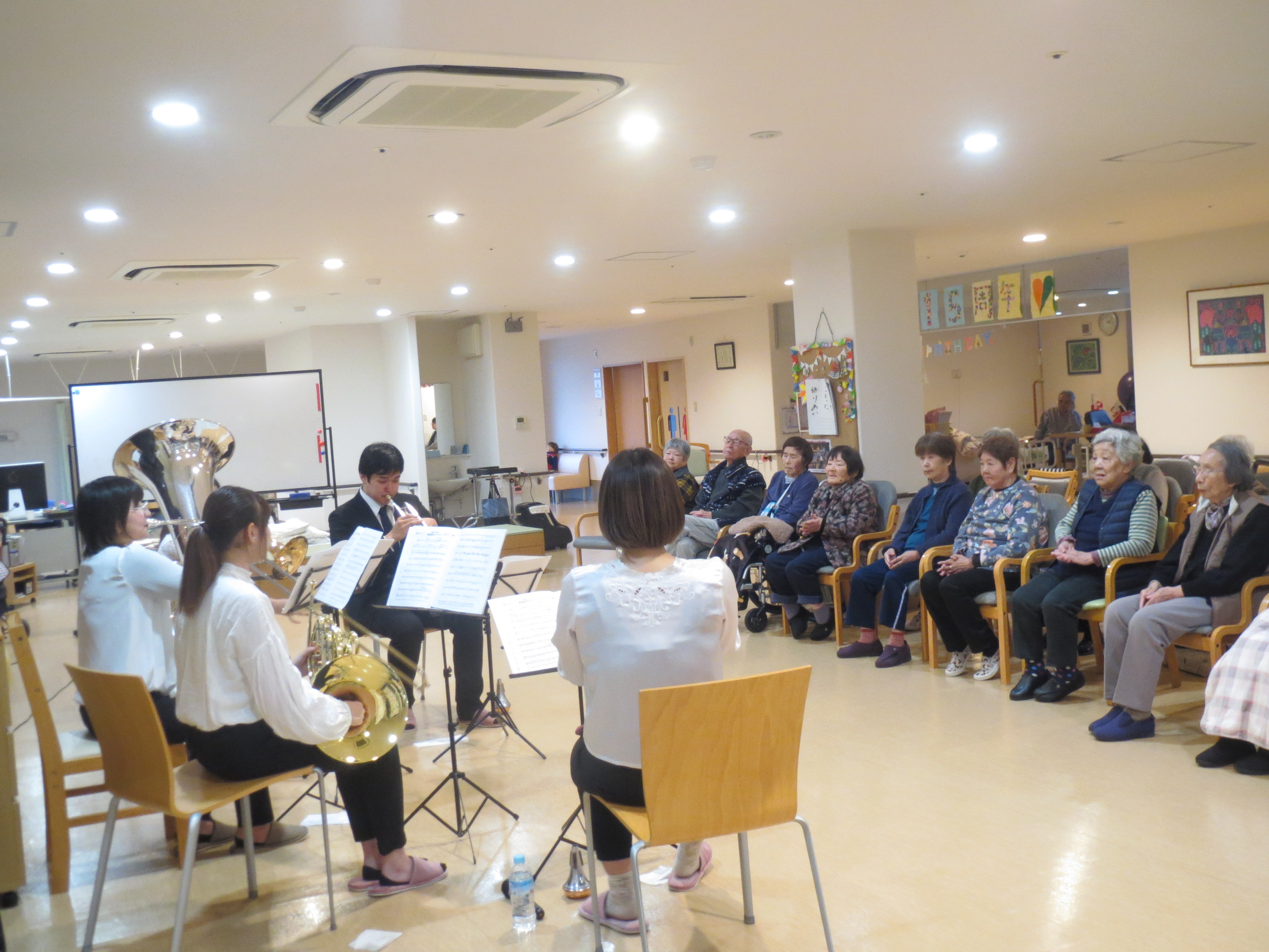 普段聞くことがない、金管五重奏にご利用者様も聞き惚れていらっしゃいました。(ご利用者様だけでなく、職員も聞き惚れていました♪)